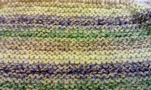 My second project is a baby blanket for my boss. They are expecting in December. Since they chose not to know what sex the baby will be I’m working up this lime green and purple stripe blanket. With all the spinning I haven’t made much progress but so far it’s 80 stitches wide and 42 rows long.