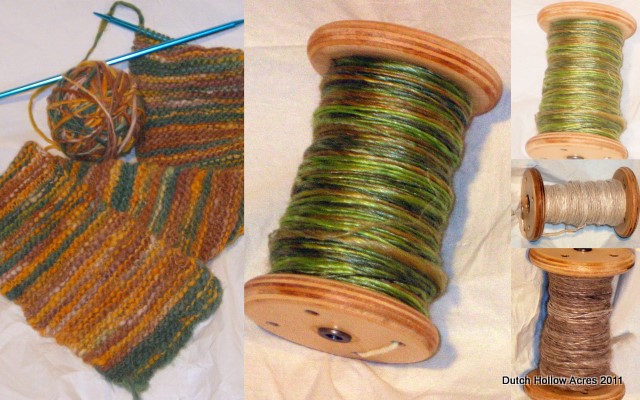 I’m also working on my first ever knitted scarf. Just something simple but with some of my spun single ply yarn with some fun colors I used to keep it interesting looking.